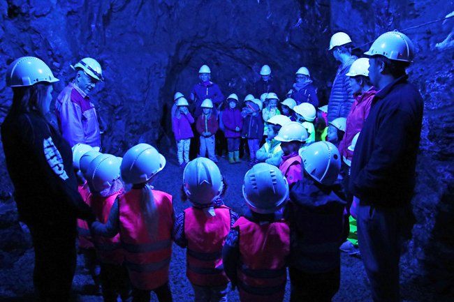 Til info! Omvising i gruva er ikkje tillatt/anbefalt for born under 3 års alder. Dette på grunn av krav til hjelm, miljøet i gruva, mykje gåing og lite utbyte for aldergruppa.