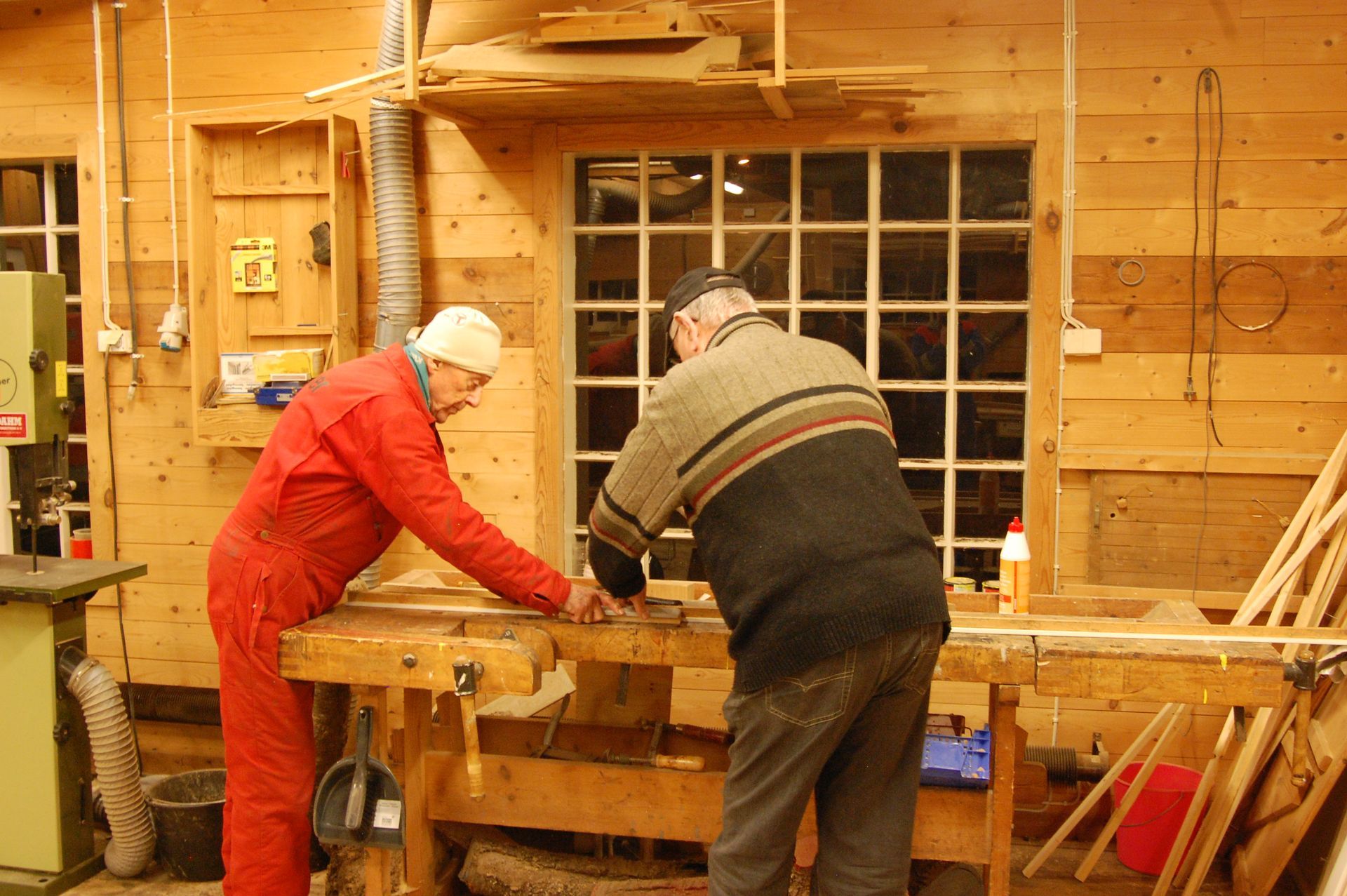 I smia skal det òg kome opp fleire bilete, og Ivar J. Helleland og Wilfred Sætre heldt på i snikkarverkstaden med å lage biletlister som bileta skal stå i på veggen. Dei har no fått god dreis på arbeidet, sidan dei allereie har produsert fleire lister som heng på veggen i Heishuset.