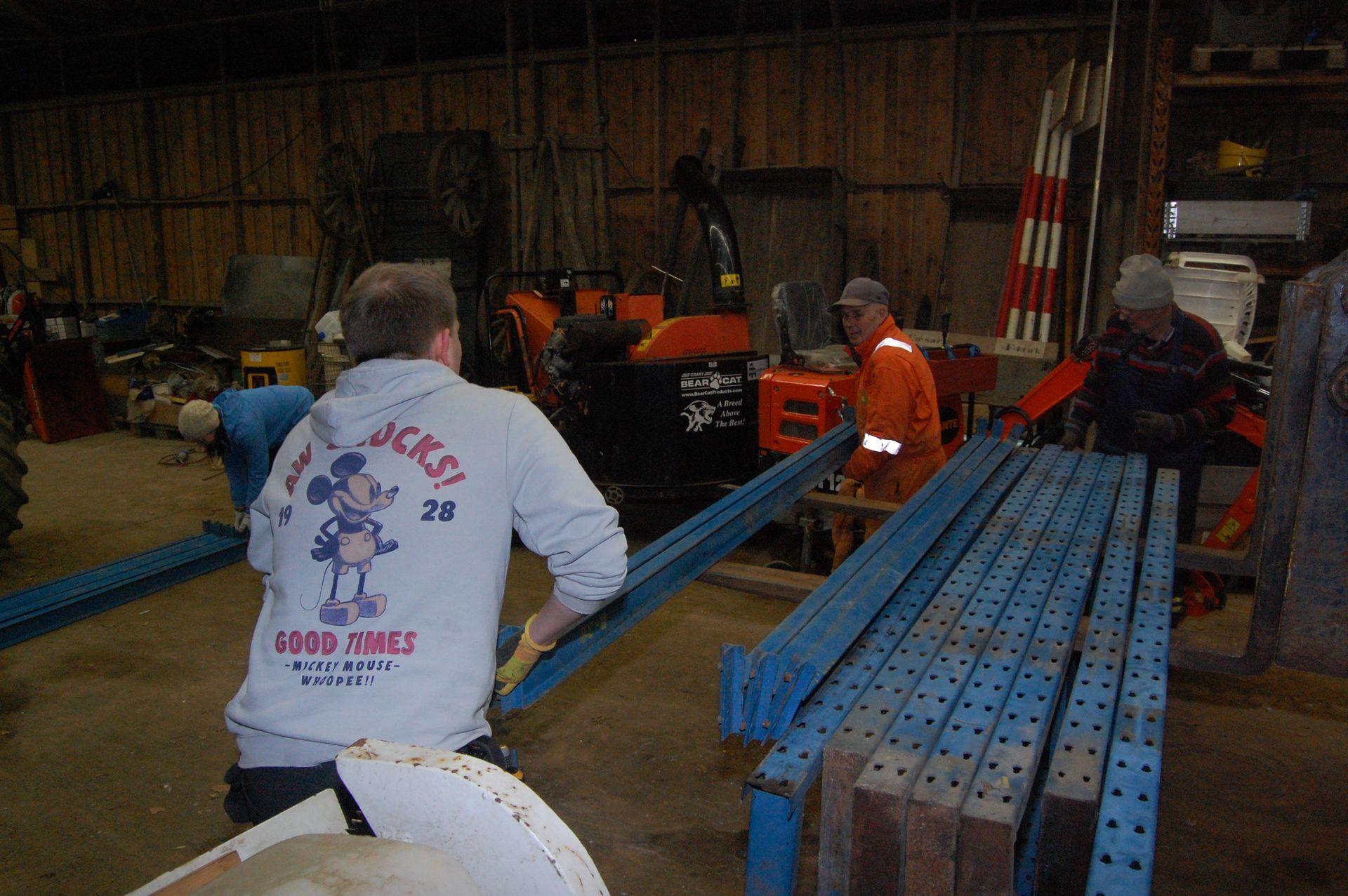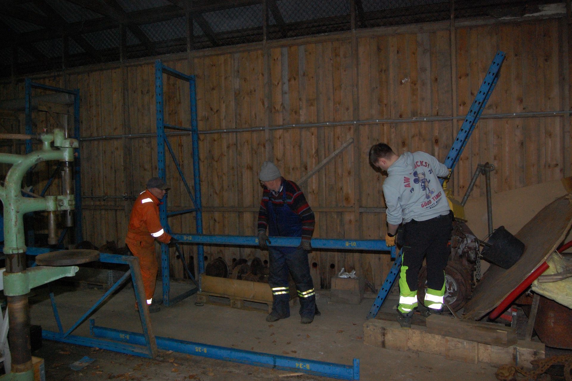 I Heishuset vart pallereolane som stod i kjellaren, borne opp og ut til trucken for vidare transport til Lokstallen. Når dei er sette opp der, blir det lettare å halde orden i Lokstallen, sidan ein då kan stable ting i høgda.